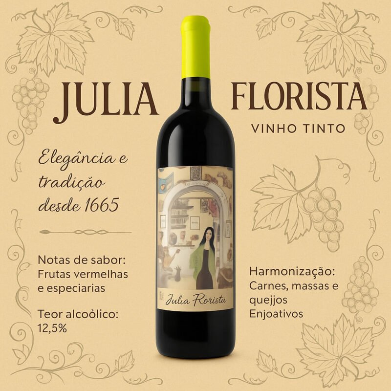 Júlia Florista Vinho Tinto – Onde o Arte se Encontra com o Sabor! Liberte sua criatividade em cada gole!