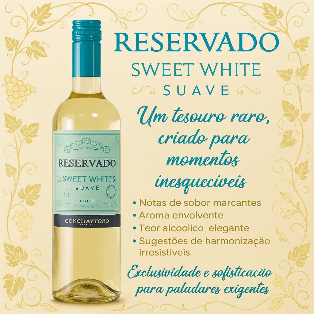 🍷 Um vinho leve, elegante e irresistível, perfeito para momentos especiais e celebrações marcantes. Produzido no Chile pela consagrada Concha y Toro, este Sweet White Suave traz frescor, suavidade e equilíbrio em cada gole, transformando qualquer ocasião em uma experiência única.