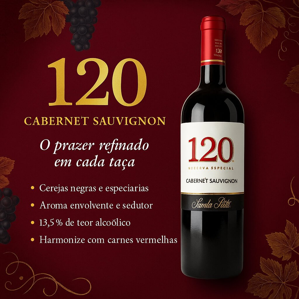 O Santa Rita 120 Reserva Especial Cabernet Sauvignon é um vinho chileno icônico, reconhecido por sua qualidade e história. Com aromas envolventes, sabor encorpado e taninos elegantes, ele é ideal para momentos de celebração, jantares sofisticados e pratos robustos.